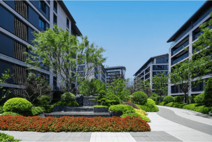 漫游其中,五重景观,绿树繁花相映成趣;闻桂、薇枫、沁兰、观棠、探梅、吟风六坊巷,多层次植物认知园,花开四季;安虎乐园,全龄游乐配置让孩子在玩耍中,健康成长。