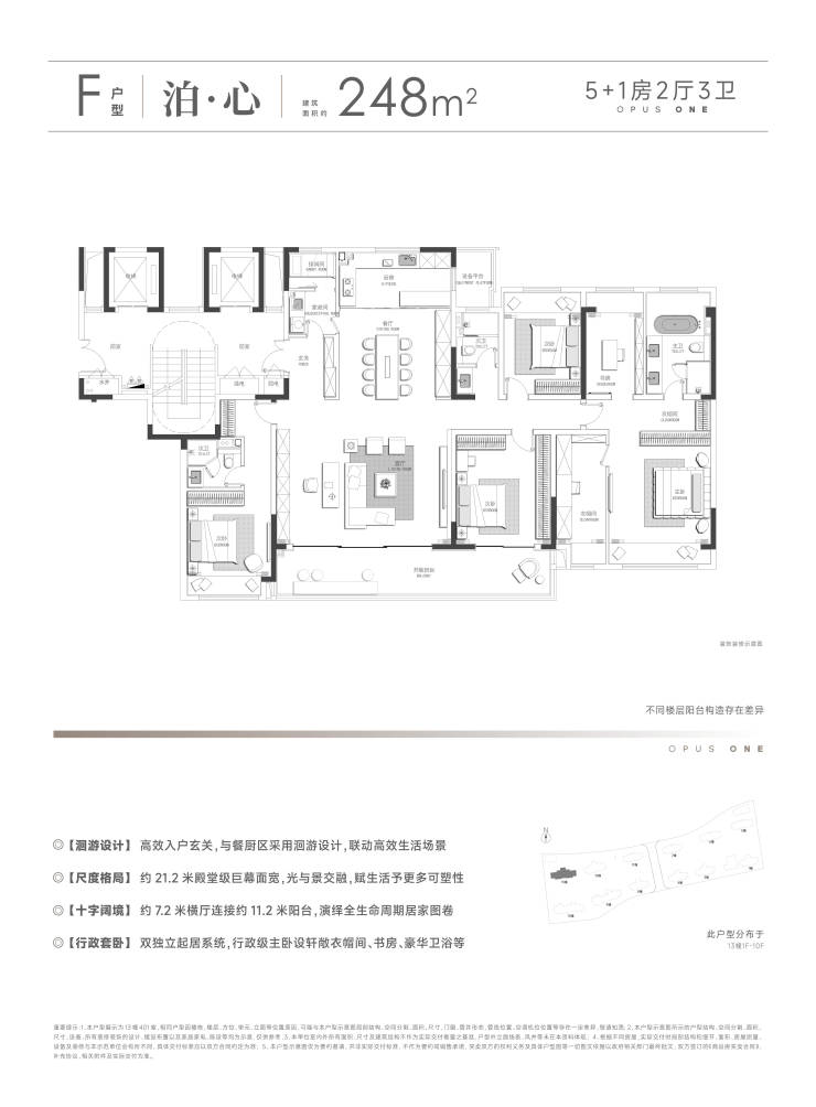 建筑面积约165-248㎡人文大平层,最大超20米面宽、阔境轴线、双套房设计(差异户型除外),同时甄选精装品牌,开启同频国际的智能化家居生活。