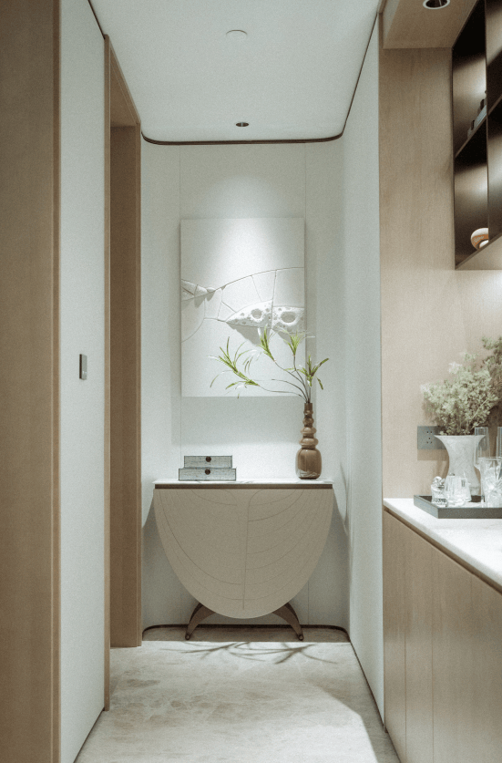 服务电梯连通次玄关,直达家政间,晚归以及服务人员由此出入,将对家的打扰消弭至无形,礼仪轴和服务轴分离,营造了尊贵的私密感,带来有序妥帖的归家感受。