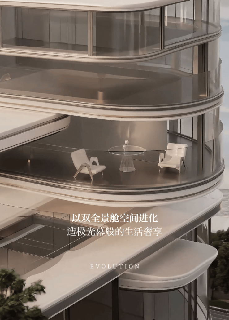 作为佛山城市封面的天际线组成模块,作为超新规进阶之作的佛山序,必须用创新视角审视室内居住与自然资源的关系。佛山序打造“双全景舱”产品迭新城市的居住体验,为佛山滨水奢宅带来新的创见。整个空间拥有5面采光,进光周长超45米,两个悬挑的舱体,犹如驶向星辰大海的“未来之船”,每个舱体都拥有2个270°的转角,并通过LDKRG一体化的空间设计,升级家庭关系场,将窗外这目不可穷尽的风景铺陈为日常可感、可享受的生活要素,而非仅是“观景”,深刻理解“超新规”与“滨水景观”这两大要素,为佛山,带来全新的居住感受。