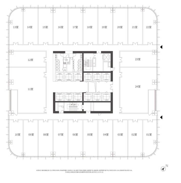 电梯:共计12部通力品牌客梯,高低区各6部,另设一部消防梯