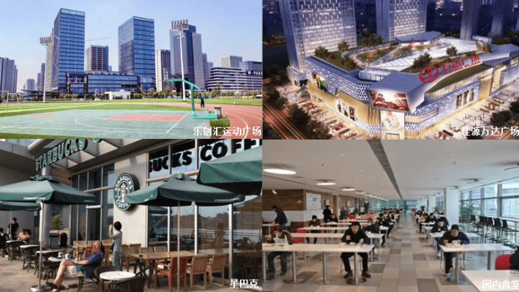 1km范围内,星巴克、瑞幸咖啡、云食集美食广场、肯德基、麦当劳等餐饮配套