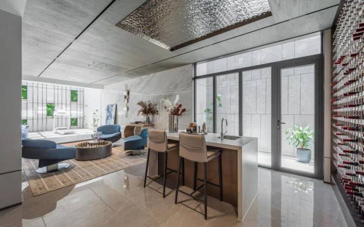 地下空间+挑高客厅(340㎡户型)+阳台+露台,绿城·春江潮鸣就像在钱塘江边搭出的一个通透积木,多棱角地折射江面的潮起潮落,以及江上的云卷云舒。