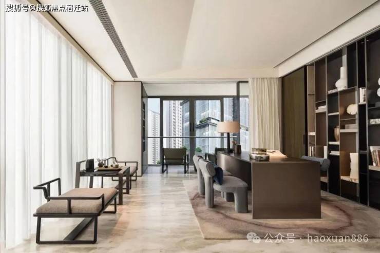 如果说杭州的一线江景大户型也有等级之分,那么七星潮鸣无疑就是那个刻着“••”符号的爱马仕喜马拉雅尼罗鳄皮包,它代表着尊贵、奢华与独一无二。走进七星潮鸣的示范区与样板间,您会仿佛踏入了一个手工高定的奢华世界,每一处细节都充满了写实的生活丰度与质感。 建筑层高高达4.3米,远超一般大平层的3.4米限制,搭配270°的落地玻璃设计,让整个空间显得更加通透、明亮,气场十足。站在这里,您可以感受到荷尔蒙在瞬间爆发,仿佛整个世界都在为您喝彩。