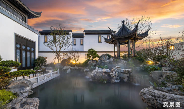 项目整体容积率仅约0.44,是杭诸少有的低密院落,以山水为媒,诗画为髓,汲取江南名园风华,利用22m整体高差,园林随山地起伏,景观层层错落,犹如一幅臻罕的立体山居图,拾阶而上的中国坊巷,营造“一步一景、曲径通幽”的诗意归家体验。