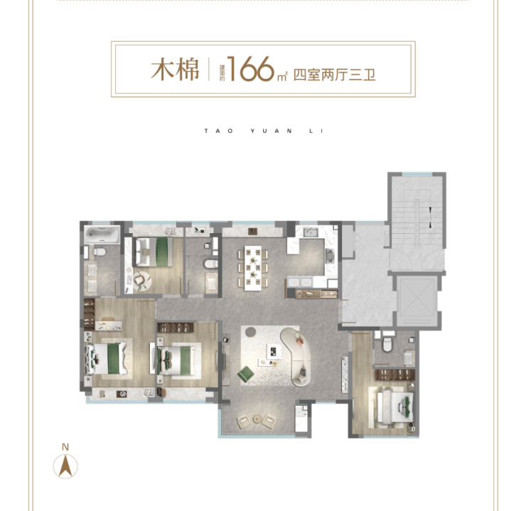 南地块168套,户型为:建筑面积约106㎡、建筑面积约166㎡;