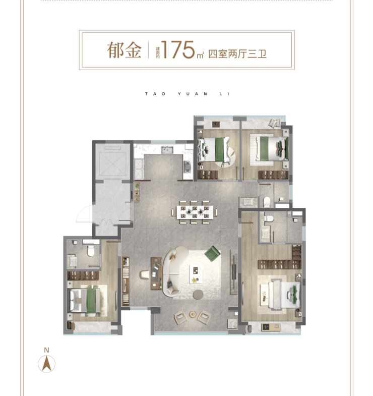 通过“新桃源会客厅”(社区广场)、“独立社区会客大堂”、“林荫归家步道”、“中央景观聚场”、“品质入户单元(标志性景墙+专属入户铺装)”、“首层精装大堂”六大空间节点,构建仪式感与自然意趣交融的归家动线,让每一次归途都成为充满惊喜的沉浸式桃源之路。