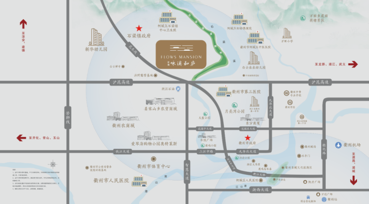 石梁溪畔,主打高端生态宜居板块,附近低密楼盘环绕,有石梁溪玫瑰园、恒盛名苑等。而蓝城·咏溪和庐的加入,宋风联排合院,以纯生态的设计理念,完美融合外圈环境,再度助力板块内的人居品质升级。定位高端的城市低密古风山水住宅,成为改善进阶型的家庭首选,衢州西部置业的理想居所。
