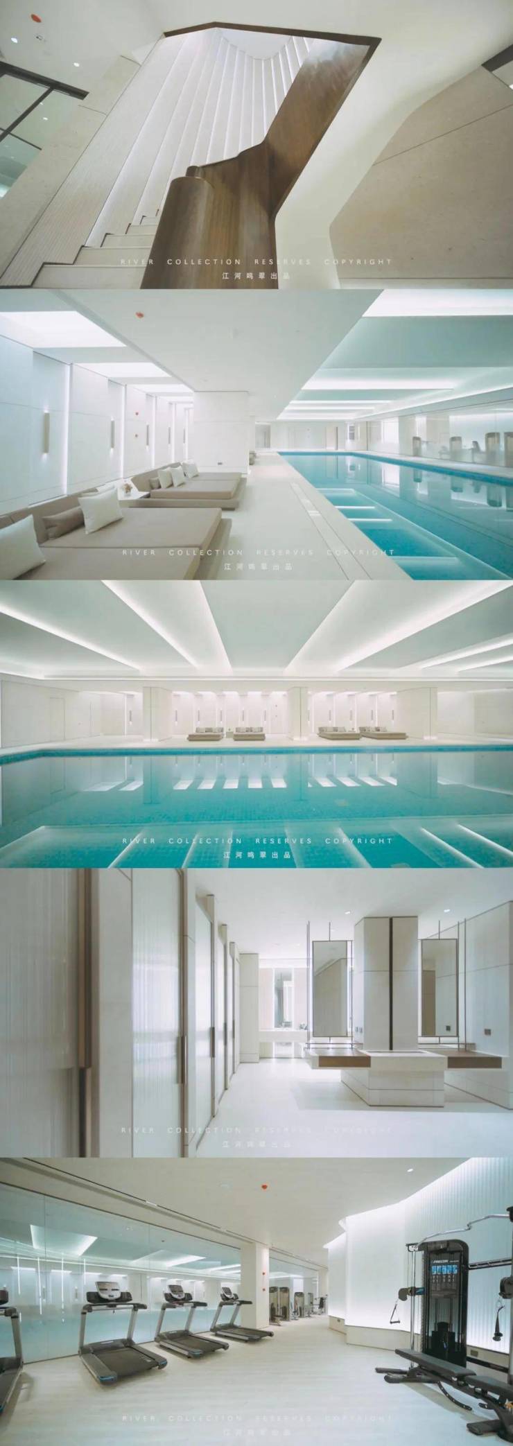 共享园区配套,恒温泳池+健身房+架空层配套,滨江物业,物业费7.6元/月/㎡;