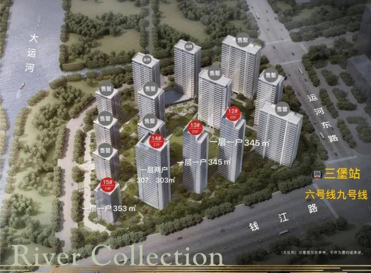 14号楼景观楼王,南向看钱塘江、京杭大运河、摩天轮、莲花碗,北向正对园区蓝宝石水景;