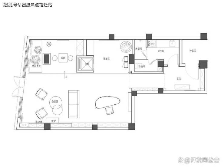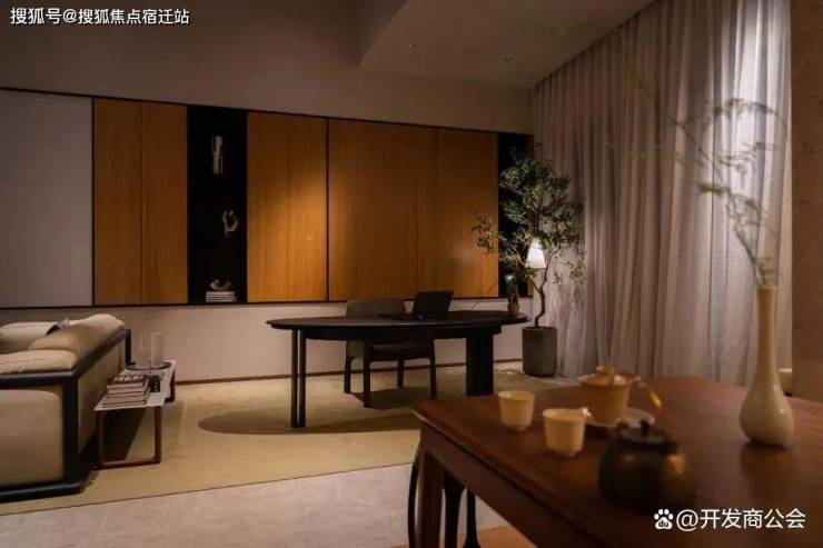 负一层设置茶室、会客厅、展示区、玄关,满足主人日常私人休闲及待客需求。