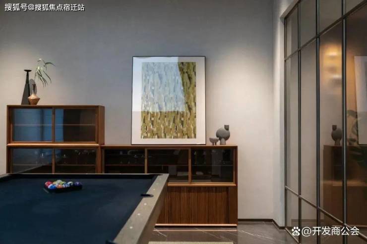 负一层设置影音室、台球休闲区、吧台区,采光通风良好,为日常休闲娱乐社交场所。