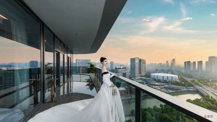 在江一云境每幢楼的2-5层,通过层层退台,在勾勒出流线型外立面的同时,形成了超大露台,造型颇为神似御潮府的排屋。最大的露台可达约700㎡,实在是奢侈之至!论面积,已可媲美郊区的大花园,但却偏偏是市中心的“超级空中庭院”,不知将成为哪位巨子的珍藏?