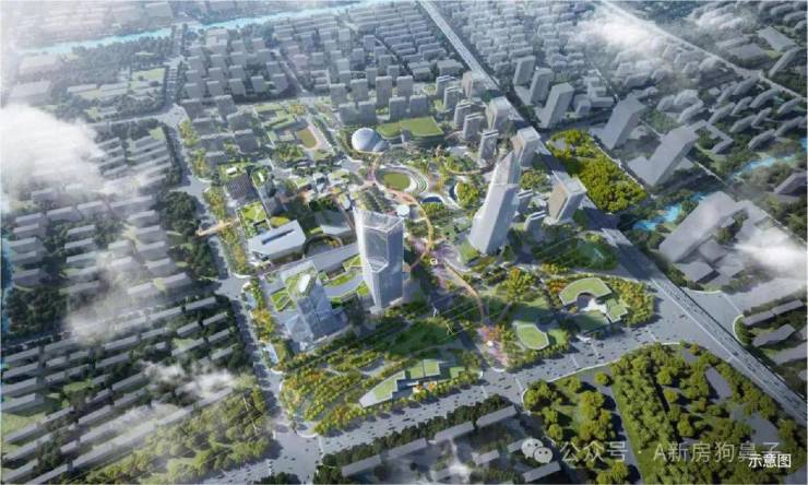 在建筑规划中,通过让建筑向自然退让约3.5万方中央绿心及约7万方景观缝合绿脉,使自然元素得以融入;同时让屋顶向天空打开。打造全新WELLBEING办公模式,构建超高层塔楼地标。此外,让文化向生活渗透,配备24班幼儿园九年一贯制学校以及约2.8万方艺文业态;还让记忆向未来呈现,打造十字步行街空中商业长廊这一约40万方超级商业IP核。