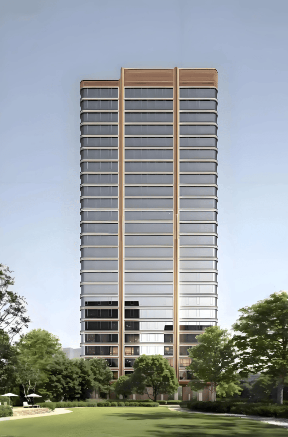 外立面采用流畅弧线转角设计,搭配Low-E中空玻璃幕墙,辅以香槟色格栅与铝板点缀,与云城地标“金钥匙”、“金手指”交相辉映,共同构筑世界级中轴线上的艺术景观。