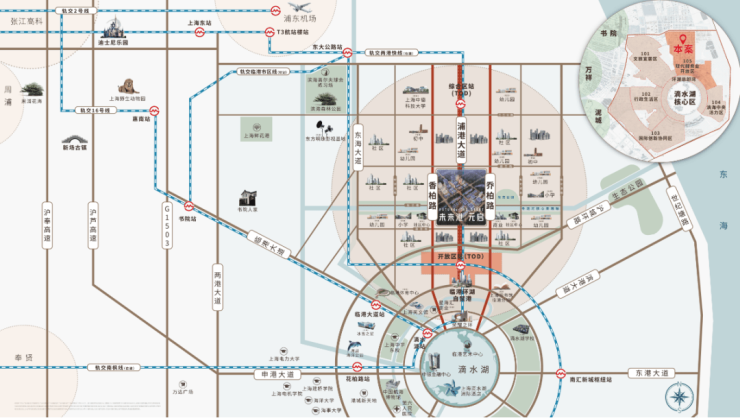 •项目距离在建中两港快线地铁开放区站约900米,约15分钟至浦东机场、约30分钟至张江、1小时可至虹桥枢纽;
