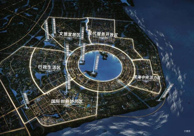 •滴水湖核心片区用地面积 72.09 平方公里,形成“一环、五片”的总体空间结构。本案位于105开放区,黄金中轴核心地标位置。
