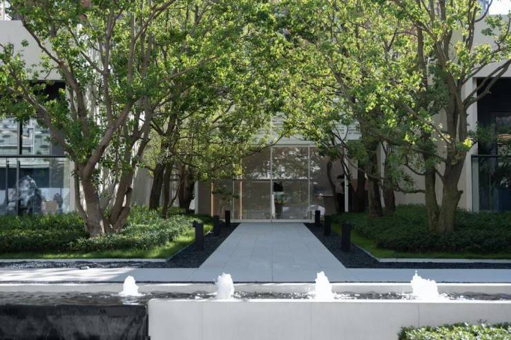 山谷间穿梭的流水汩汩涌动,清澈泉溪敲击着太湖石,绿影光驳间,景观动静相宜,令人遐思。清幽的入户途中,层层乌桕,交错摇曳,树影娑婆,叶间沙沙,带来山风的吟唱,坐于水畔,林下轻语,理想与现实交汇出一方绿野仙踪。