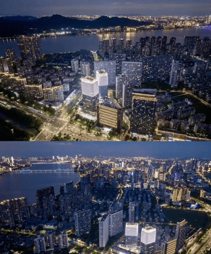 望江山由全球排名第七、拥有145年历史的伍兹贝格担纲整体设计。设计灵感源于钱塘江波纹与西湖群山曲线,塔楼圆角柔化建筑棱角,双曲塔冠提炼群山韵律,让建筑向天空温柔过渡。