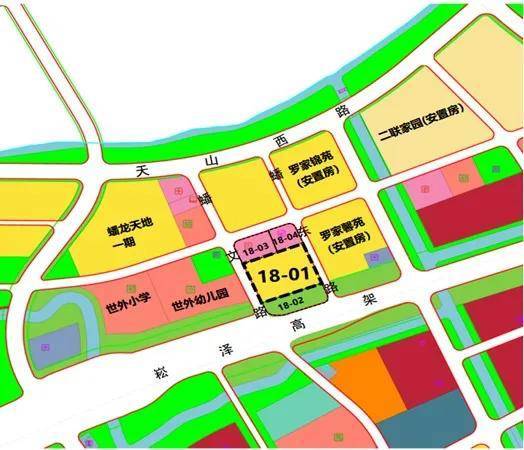 项目四至:东至蟠东路、南至崧泽大道、西至蟠文路、北至龙联路。其中18-01为普通商品房,18-03为文体用地,18-04为商业用地,项目规划住宅套数下限293套。