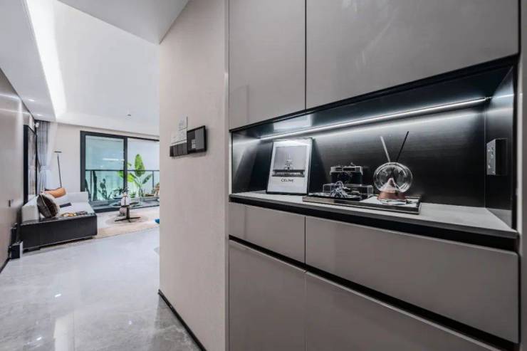 项目高定装修品质非常硬核,甄选品质品牌,远超同价位竞品,尤其是完善的精工细节,让看过的客户大呼惊艳!入户门设置玄关柜收纳体系,三段式设计,定制橱柜+石英石台面。