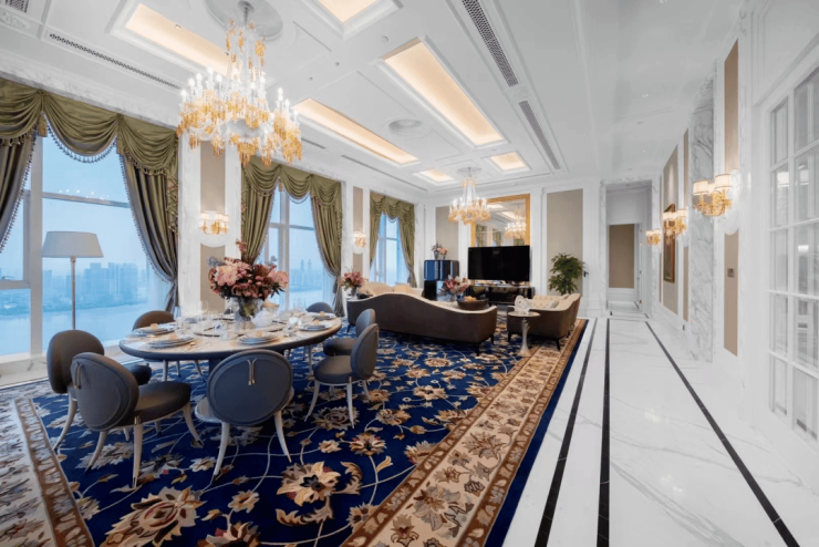 大平层公馆有两种装修风格, 3.4米层高的现代风格和4.8 米层高的新古典,特别是 4.8 米层高的新古典风格,市面上绝无仅有,真正体现了稀缺与奢华。