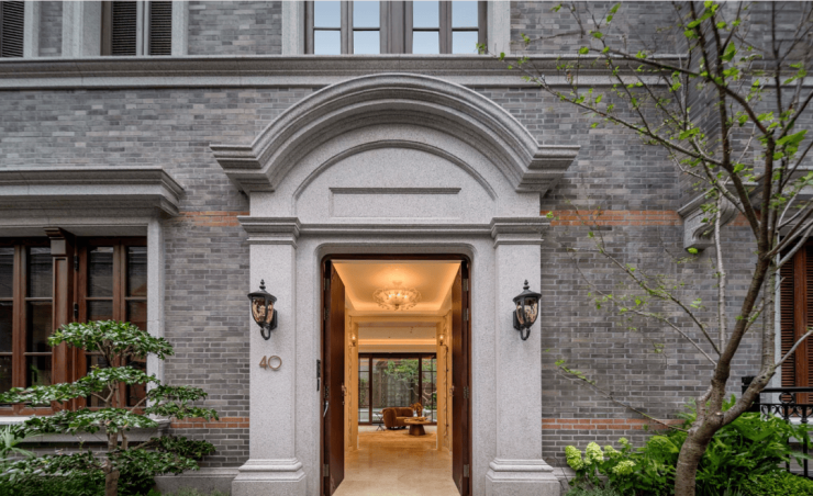 运用新旧料艺相结合的手法,溯源旧址建筑5大立面风格。涵盖早期石库门、后期石库门、新式里弄、沿街中式立面及Artdeco等丰富的建筑风格,通过清水砖砌筑、石材幕墙、仿木铝合金墙面等手法,将经典海派与现代居住理念融合,经典超越经典。