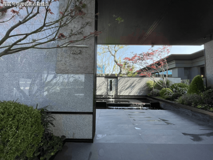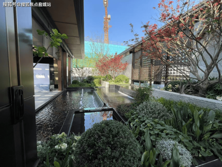 扬子保利·江韵瑧悦景观示范区,采用典型的中式“回廊式”动线,中心是镜面水景,参观者沿着四周院墙围合而成的步道行进,且社区内所有步行区域顶部皆有风雨连廊,体现出第四代住宅的显著特色(第四代住宅风雨连廊不计容)