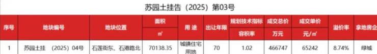 2025年7月,绿城以前瞻战略眼光,6家房企,激战49轮,溢价率8.74%,竞得玫瑰园南优质地块,地块容积率仅1.02,近年来,苏州出让容积率≤1.05的宅地屈指可数,金鸡湖湖岸线低密宅地更珍稀,地块成交楼面价65241.78元/m²,刷新了江苏省楼面地价纪录。天赋稀贵的资源密度,与玫瑰园一期形成“玫瑰园湖区”,在苏州独树一帜。