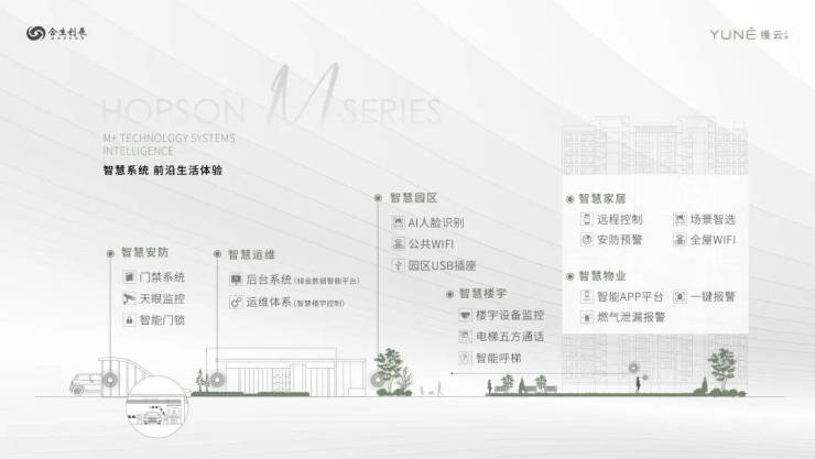 M+科技体系:首创M+科技体系,以智慧、健康、精工、生态四大体系,赋予空间美好的体验与品质,每一寸细节皆为生活悉心定制。