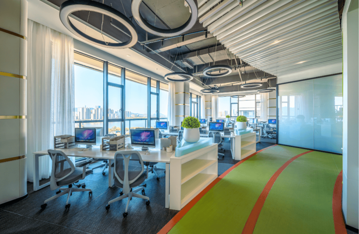 项目贯穿整个园区东西、南北的,是目前全武汉市在售独栋企业社区中,最长、最宽的景观主轴,它东西长 500 米、南北长 217 米,最宽处 39 米,这条城市级绿廊,未来不仅提供给更多企业开阔的园区美景,更将成为整个园区内的“景廊、风廊、氧廊”,春天繁花似锦,夏天凉风习习,秋天色彩缤纷,冬天暖日阳阳。这才是生态企业社区的享受。注重分享交流,有夜光塑胶跑道,打造一个 7X24 小时的生态办公环境,从而提升员工满意度 。