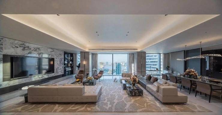 精装标准:意大利大理石、德国厨卫系统、Savant智能家居全系配置,730㎡户型更配备独立藏品室与星空露台。