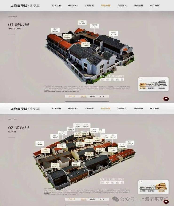 • 户型面积:面积为206-998 平,主力户型300-500 平,共有 38个不同户型,如1字型、回字形、C字形等。