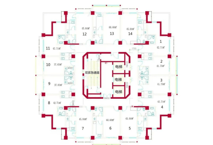 【在售房源】:在售1#(33F)楼公寓,建面约37㎡、42㎡、45㎡、60㎡,售价约11000-14000元/㎡,3梯14户设计,毛坯精装均有。