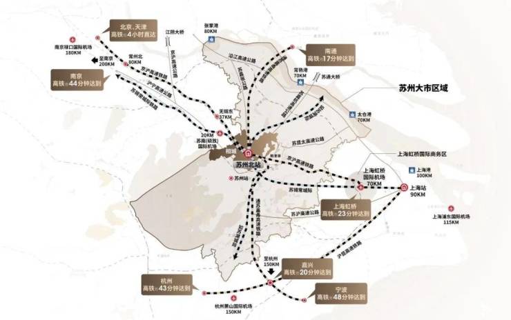 •黄金双十字:京沪+通苏嘉甬 高铁 | 如通苏湖+苏锡常 城铁 → 国家级枢纽中心