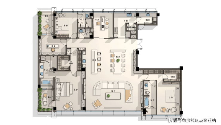 标准层也带南北双露台,约8.6m面宽的大方厅,居住舒适度明显高于一般的高层大平层。