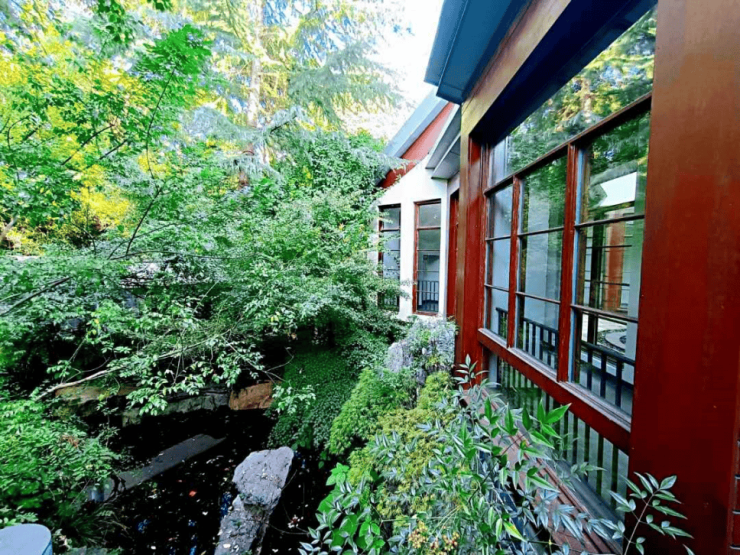 【曼荼园】的建筑和景观设计是同步的——在设计中,将景观设计领域的方法、技术、工艺融入到建筑设计中去,并进行全方位的空间整合——从宏观到微观,从大尺度的意象整合到小尺度的细部呼应,建筑与景观都应协调地融合于一体,并共同处于一个稳定的有机系统中。为了驳岸的色彩对比与美观效果,大胆创新,在已然秀丽非常的英石中又夹杂了艳黄的鹿头石,和南山用石一致,交相呼应。