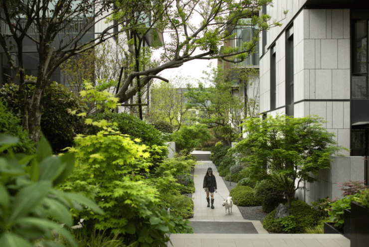 在走访中,记者看到西溪印一条普通的公共走道,两侧绿树成荫上下起伏,不会让人一眼看到道路尽头。王小钧介绍,这就是西溪印的一个小心思:以中国传统里弄文化与印章文化结合,因地制宜,打造移步异景的园区街巷空间。同时,园区植被经过几年的自然生长,后续能看到园区一年四季不同时节的不同展示。