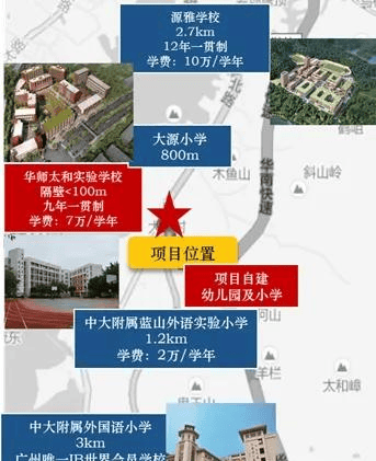 教育——自建幼儿园及小学,100m内有九年一贯制华师太和实验学校,周边有大源小学、金星小学、中大附属蓝山外语实验学校等,享受家门口全龄段优质教育;
