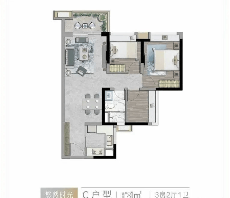 产品户型:住宅81-124㎡(三四房)