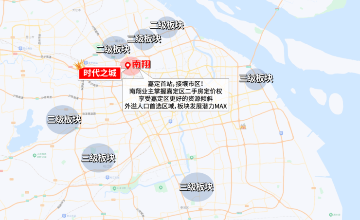 除此之外,时代之城所在的南翔, 是整个嘉定的头部板块,是11号线进入嘉定的首站, 而其他的区域则不是。
