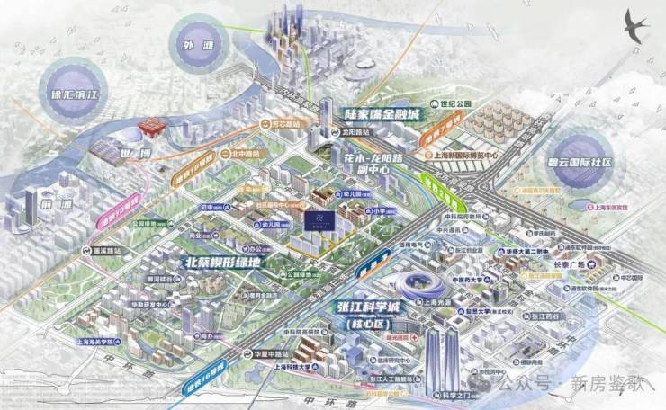 项目位于浦东张江科学城核心区,直线距离“上海光源”仅 500 米,与内环线直线约 2.2 公里,是内中环新盘中距离城市核心最近的稀缺地块。张江作为国家级科创中心,汇聚了集成电路、生物医药、人工智能等全球顶尖产业,近 50 万高知高薪人才汇聚于此。区域二手房挂牌价常年稳居 12 万 +/㎡,价值潜力持续看涨!
