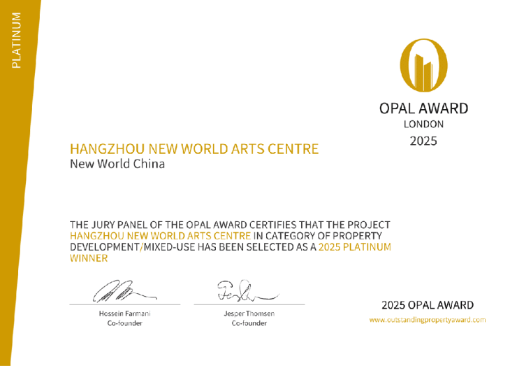 这份与城共融的初心与远见,亦收获了世界的共鸣。项目近期接连荣膺“2025年OPAL伦敦杰出地产大奖的铂金奖”与“2025年美国建筑大师奖的荣誉奖”。这两项国际殊荣,不仅是对项目整体设计理念与营造水准的高度认可,更是对新世界中国以“时代作品”参与城市更新的坚定印证。