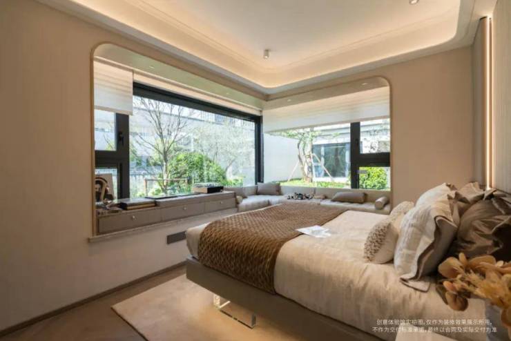 其次,边套主卧的约270°无柱转角超宽巨幕景观视界。这个景观视野和主卧采光度,实在是惊艳。