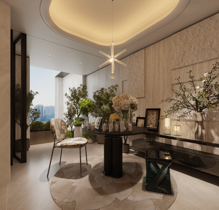 灯光设计也更进一步,从功能使用走向氛围重塑、走向景观形意表达——光线经过N次漫反射,才清雅柔和地覆盖在空间之中,提供均匀、典雅、无眩光的健康光线,同时,最大限度地考量外部景观视野与内部空间的联结,真正将节能环保的绿色居住理念融入其中,成为情绪价值的营造者。