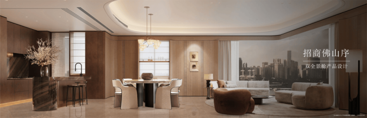 作为佛山城市封面的天际线组成模块,作为超新规进阶之作的佛山序,必须用创新视角审视室内居住与自然资源的关系。佛山序打造“双全景舱”产品迭新城市的居住体验,为佛山滨水奢宅带来新的创见。整个空间拥有5面采光,进光周长超45米,两个悬挑的舱体,犹如驶向星辰大海的“未来之船”,每个舱体都拥有2个270°的转角,并通过LDKRG一体化的空间设计,升级家庭关系场,将窗外这目不可穷尽的风景铺陈为日常可感、可享受的生活要素,而非仅是“观景”,深刻理解“超新规”与“滨水景观”这两大要素,为佛山,带来全新的居住感受。