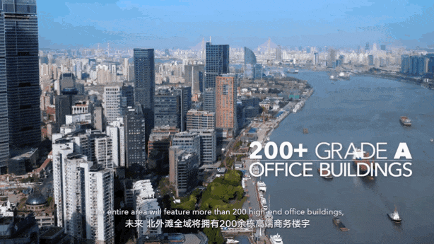北外滩未来建设的总规模将达到840万平方米,建造40栋甲级写字楼,成为全球高端楼宇最密集的区域之一。