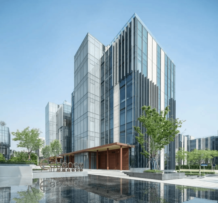 立面材质:干挂石材+玻璃幕墙
