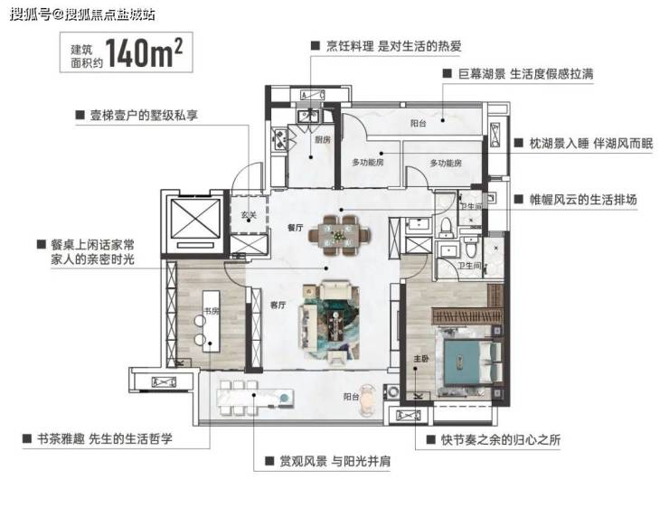 与湖更亲密,是我们的愿景。艾溪湖地理位置得天独厚,有着难以复刻的 独特半岛地势 。居住区域凸入艾溪湖,方才造就了建筑面积 约140㎡双景大平层 。位于社区北侧头排, 北观约4.5平方公里水域,南赏社区约40000㎡湖岸生活美学园林 ,启幕鲜氧湖居生活。湖光风月四时尽赏,整个艾溪湖一览无余,环抱湖景之美。