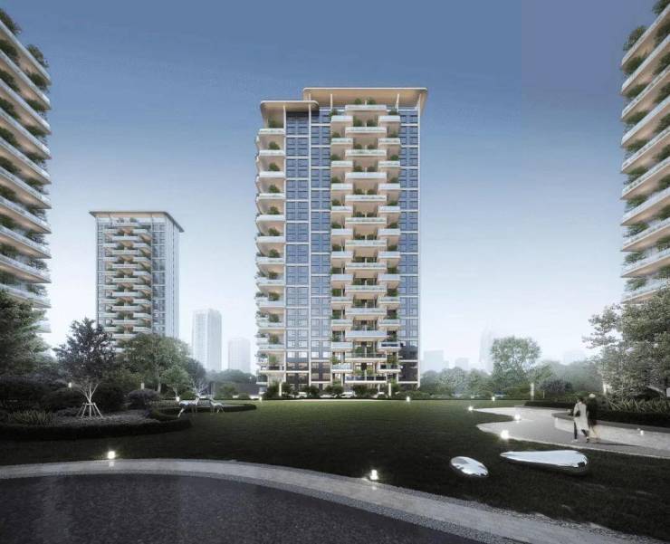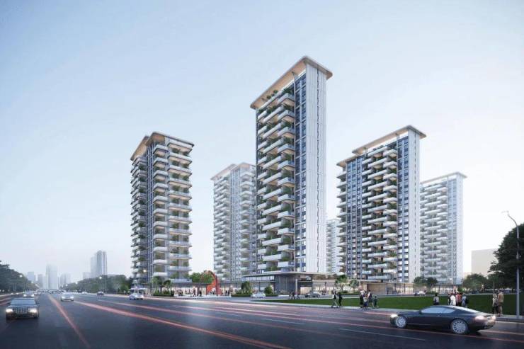 项目分为9幢23-26层住宅高层,及3栋商业和配套⽤房。